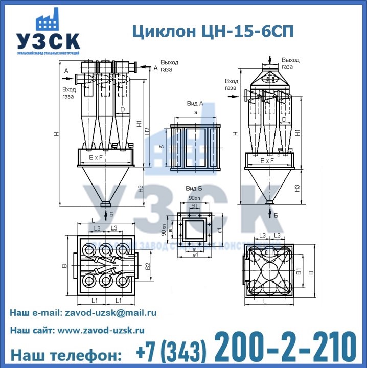 Завод «УЗСК» в Пензе предлагает большой выбор циклонов ЦН-15-900×6СП и прочих устройств, полностью укомплектованных и готовых к эксплуатации. Мы гарантируем соответствие оборудования всем требованиям ГОСТ и ТУ, износостойкость и высокую производительность предлагаемого оборудования. Уральский Завод Стальных Конструкций изготавливает и продает надежное, эффективное и производительное оборудование, имеющее длительную гарантию и большой эксплуатационный ресурс. Если требуется изготовить циклон нестандартных размеров, то такой вариант выполнения заказа тоже предусмотрен, так как предприятие имеет собственные производственные площади и надежных поставщиков. На все поставляемое или производимое оборудование имеются чертежи и прочая техническая документация. Заказать и купить циклоны или прочее оборудование высокого качества и по доступной цене можно через наш сайт или по указанному в разделе «Контакты» телефону.