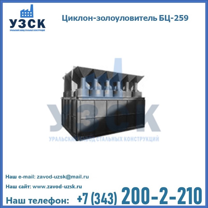 Если вы планируете купить то или иное оборудование, например, циклоны-золоуловители БЦ-259, то рекомендуем заказать данный товар на сайте УЗСК. Мы производим и реализуем продукцию высокого качества по приемлемой цене. Эксперты Уральского Завода Стальных Конструкций в Пензе проконсультируют вас по всем вопросам, помогут сделать выбор и оформить заказ без лишних временных затрат. Мы гарантируем соответствие нашей продукции всем требованиям ГОСТ и ТУ, а также износостойкость и высокую производительность предлагаемого оборудования. Если требуется изготовить циклон нестандартных размеров, то такой вариант выполнения заказа тоже предусмотрен, так как предприятие имеет собственные производственные площади и надежных поставщиков. На все поставляемое или производимое оборудование имеются чертежи и прочая техническая документация. Заказать и купить циклоны или прочее оборудование высокого качества и по доступной цене можно через наш сайт или по указанному в разделе «Контакты» телефону.