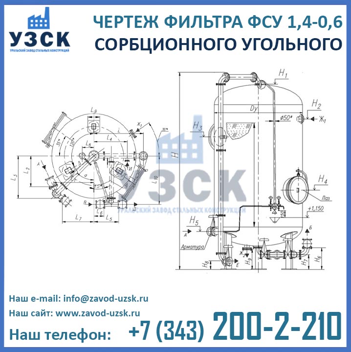 Если вы ищете фильтры ФСУ-1,4-0,6 в Пензе от изготовителя, то Вы на правильном пути! Уральский завод стальных конструкций – непосредственный производитель сорбционных фильтров ФСУ, предлагающий самые выгодные цены на ФСУ-1.4-0.6 в Пензе. По окончании процесса производства угольные фильтры проходят гидравлические испытания пробным давлением 0,9 МПа на аттестованном гидростенде, находящимся в собственности завода УЗСК. Мы гарантируем высокое качество выпускаемой продукции, и в этом уже убедились ведущие предприятия промышленного сектора России и стран ЕАЭС (см. раздел «Наши клиенты»).