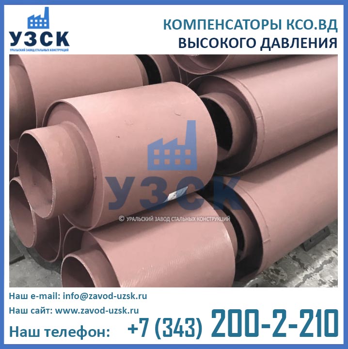 Компенсаторы высокого давления КСО ВД предназначены для компенсации температурных расширений трубопроводов и предохранения труб и сетевого оборудования от деформаций, возникающих под действием внутренних и внешних факторов. Помимо основной функции, КСО.ВД поглощает вибрации трубопроводов, а также способно восполнить незначительную несоосность труб, образующуюся при монтаже сети. Отличием от компенсаторов других типов, рассчитанных на давление 2,5 МПа, является способность компенсатора КСО-ВД выдерживать давление до 6,3 МПа (63 кгс/см2). У стандартных устройств в подобных условиях сильфон подвергается изгибу, неустойчивости и может быть поврежден.